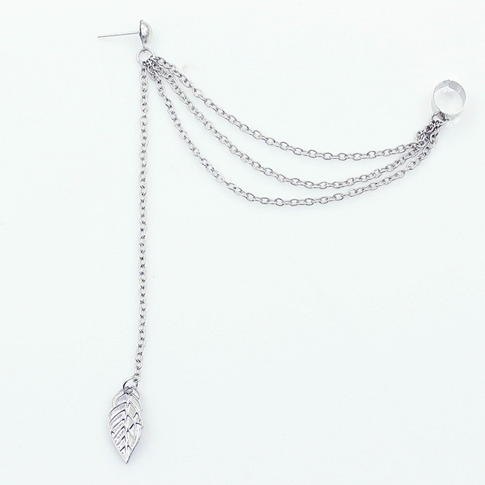 Metal leaf leaf tassel earrings ear clip jewelry women